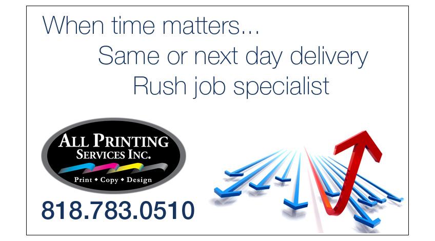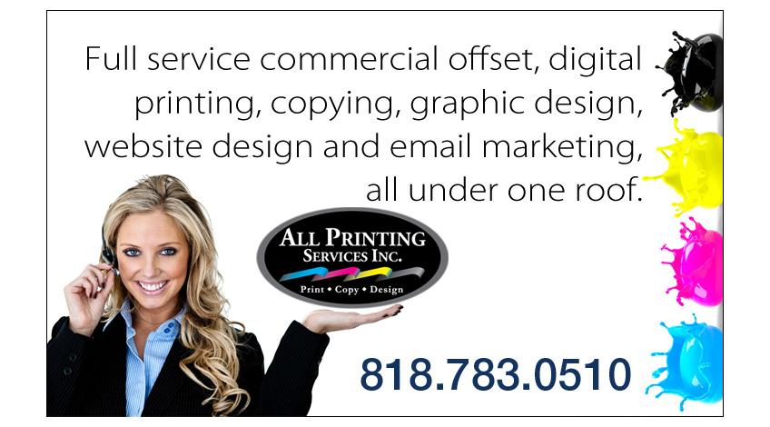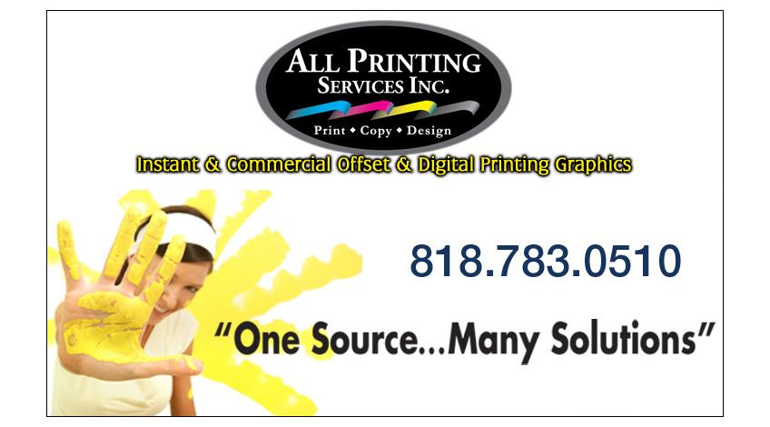All Printing Services Inc., is a family owned and operated business since 1987. We offer full service commercial, offset and digital printing, copying, large format, graphic & web design all under one roof. We are a trusted leader with a strong emphasis on affordable printing and same day printing in Los Angeles.